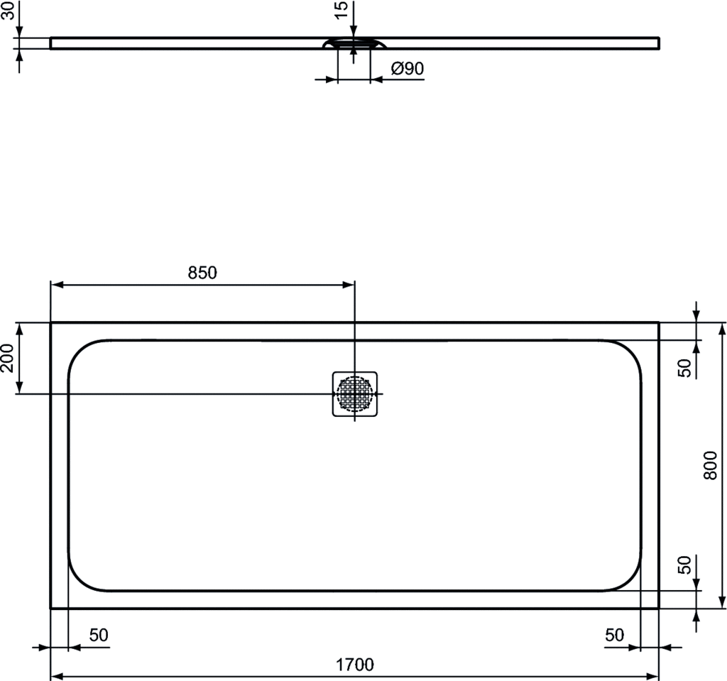 Odpływ Ø90mm, do skompletowania z syfonem.