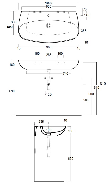 Simas Vignoni Umywalka Ścienna/Stawiana na blat 100x52cm VI12/VI 12