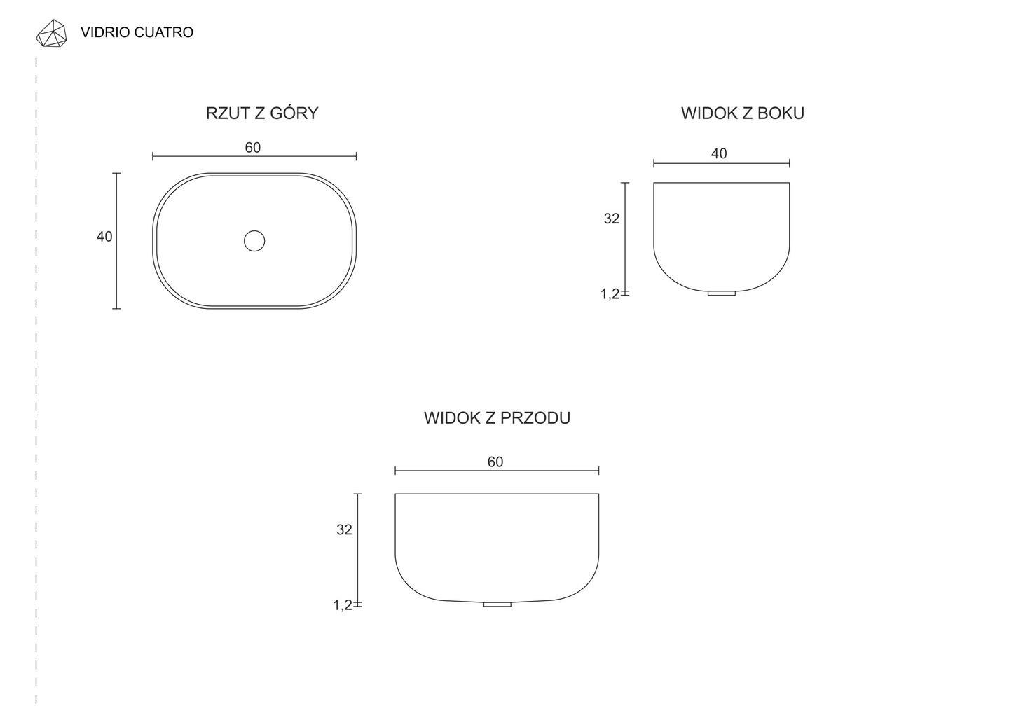 Cristalstone Separado Umywalka stawiana 60x40 biała VIDRIO CUATRO