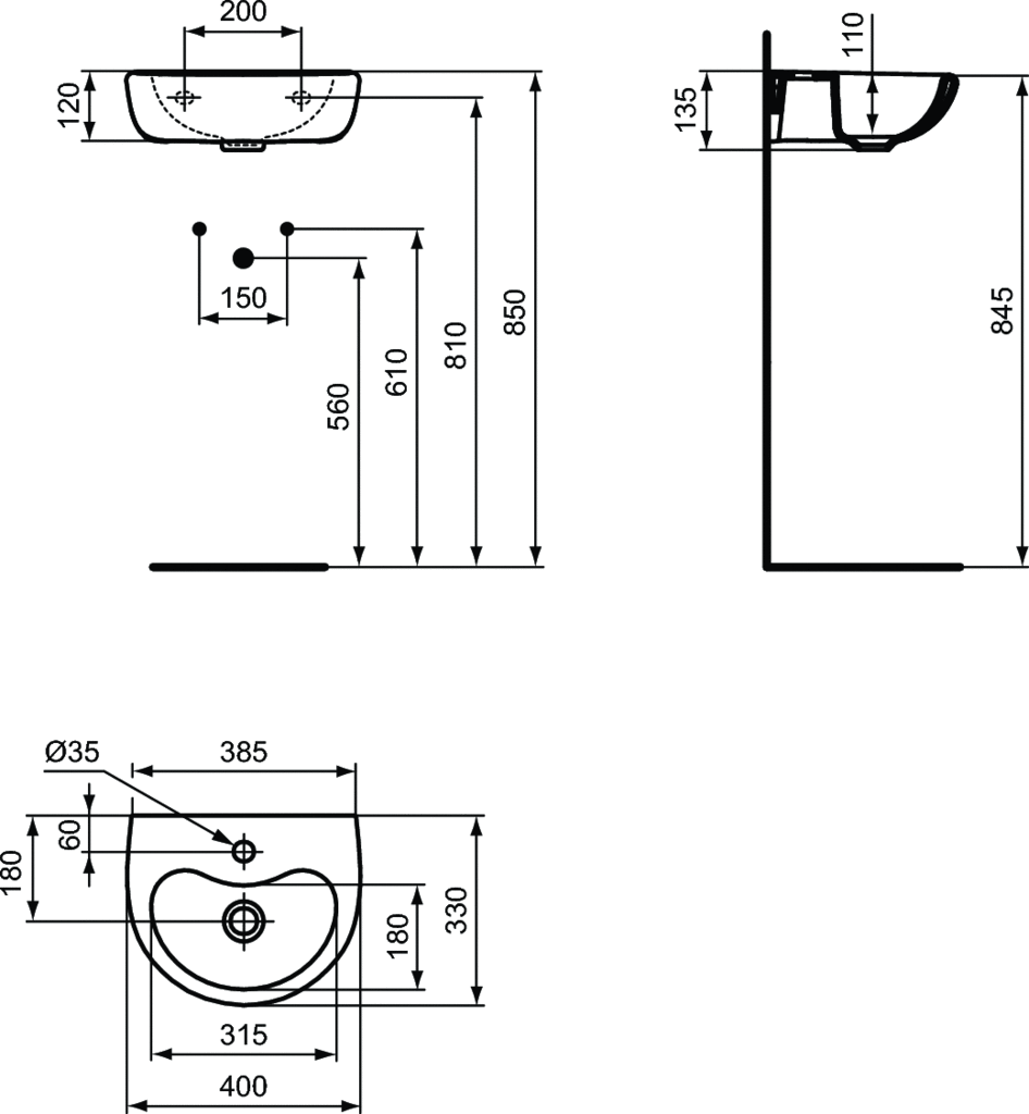 Ideal Standard Contour 21 Umywalka 40 cm, bez przelewu, biały S263901
