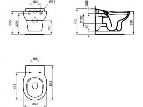 Ideal Standard Contour 21 Miska wisząca WC Rimless przystosowana dla dzieci, wysokość 355 mm, biały S312801