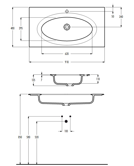 Eto Ode Umywalka Wpuszczana w blat 91x48 cm biała 00611201