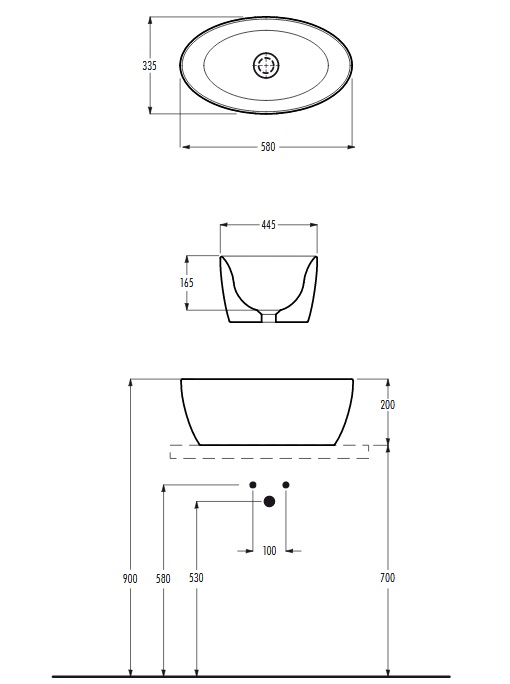 Eto Pit Umywalka Stawiana na blat 58x34 cm biała 01219001