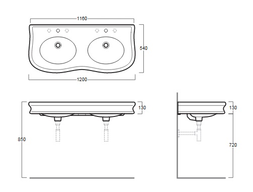 Simas Lante Umywalka Podwójna Ścienna/Stawiana na blat 120x54 cm biała LA12