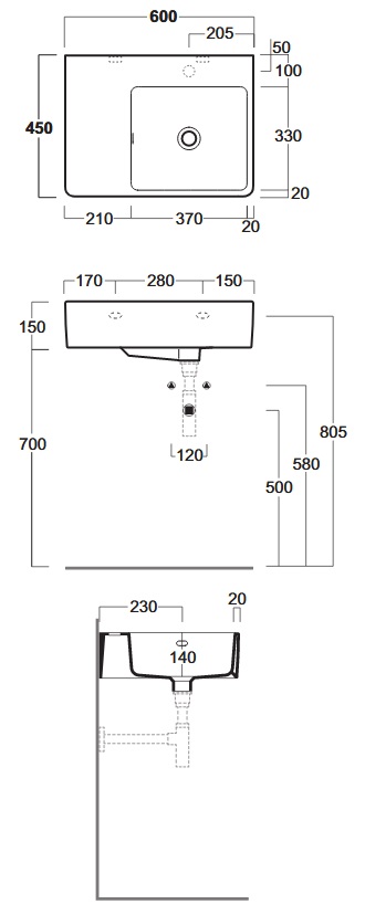 Simas Quasar Umywalka Ścienna 60x45 cm biała QU60D