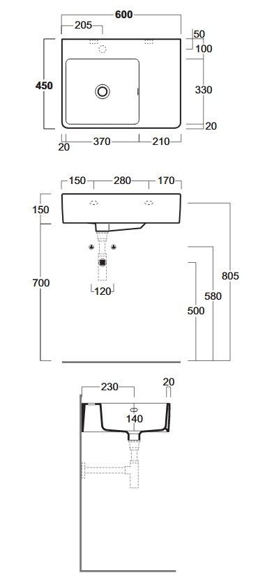 Simas Quasar Umywalka Ścienna 60x45 cm biała QU60S