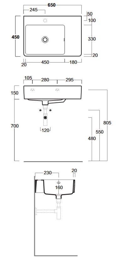 Simas Quasar Umywalka Ścienna 65x45 cm biała QU65S