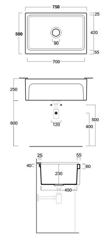 Simas Quasar Zlewozmywak Stawiany na Blat 75x50 cm biała Q500