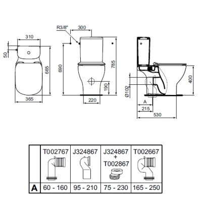 Konieczne dodatkowe elementyZbiornik do kompaktu WC, 3/6 l, dopływ wody z boku (T356701)/ dopływ wody z dołu (T356801)
