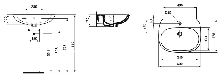 Ideal Standard Tesi Umywalka 60 cm - Light design, Biały T352201