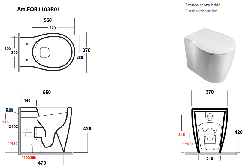 Olympia Ceramica Formosa 2.0 Misa WC stojąca Rimless, Biały FOR1103R01