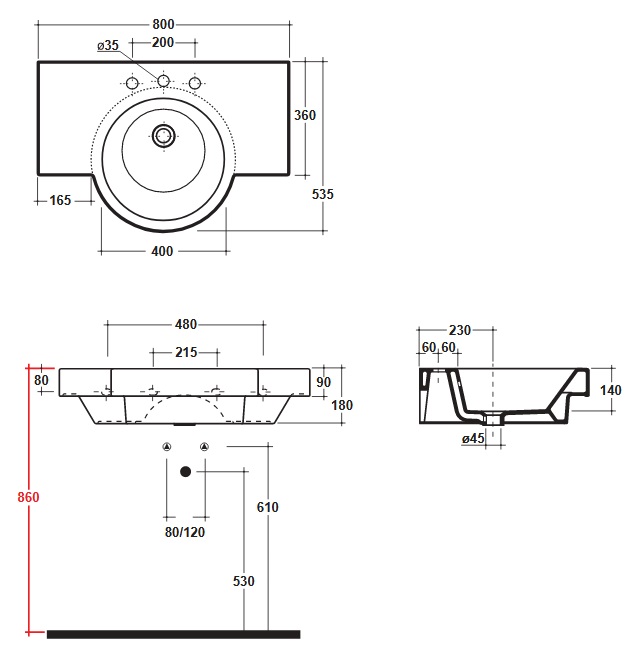 Olympia Ceramica Tutto-evo Umywalka ścienna 80 cm z półką po obu stronach, Biały TUT4180101