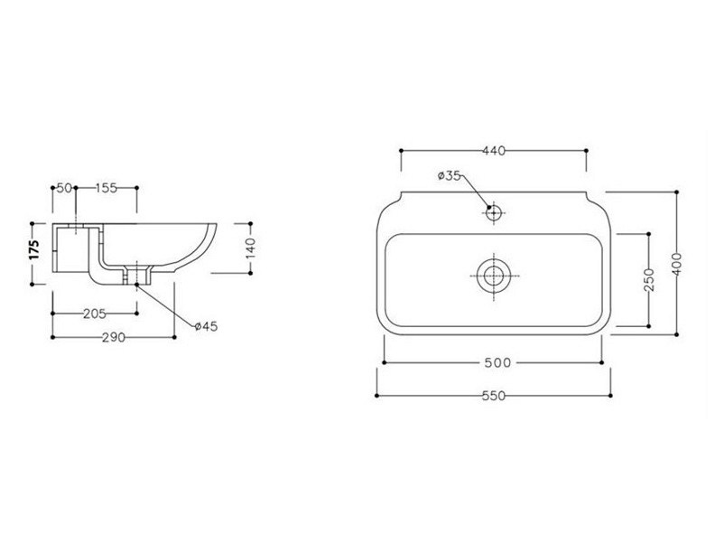 Umywalka montowana do ściany.