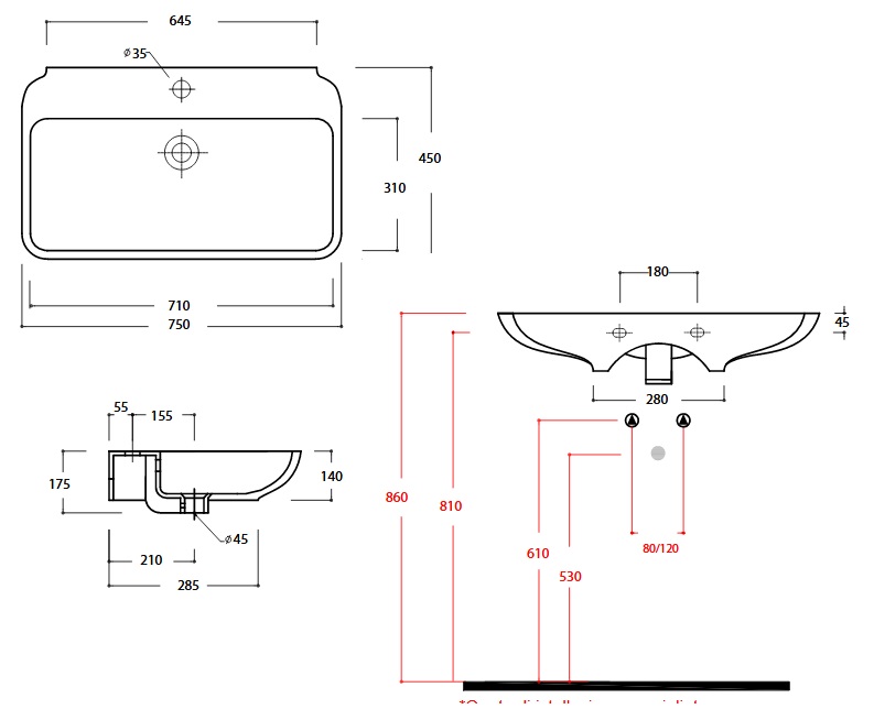 Olympia Ceramica Clear Umywalka ścienna 75 cm, Biały CLE4375101