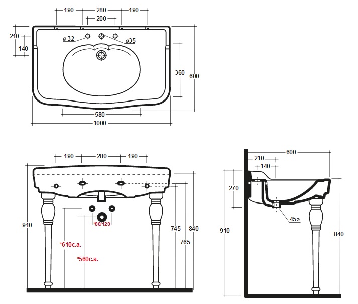 Olympia Ceramica Impero Umywalka 3-otworowa wisząca 100x60 cm biała IMP4C10301