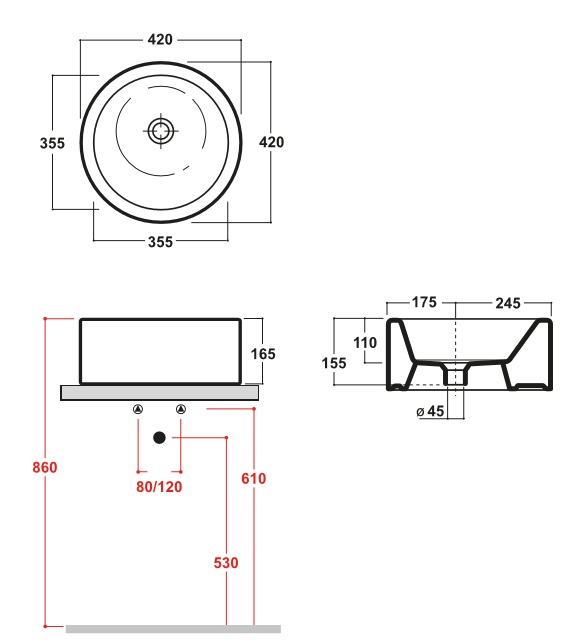 Wymiary: ⌀ 40 x h 16,5 cm