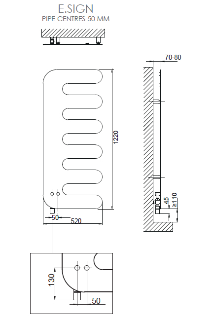 Cordivari E.Sign Grzejnik dekoracyjny/łazienkowy 1220x520 mm kolor R01 RAL 9010 biały 3540806100220