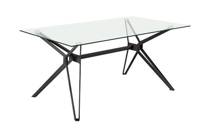- Blat stołu wykonany z hartowanego przeźroczystego szkła o grubości 10 mm - konstrukcja w kolorze czarnym wykonana z metalu polakierowanego lakierem proszkowym - Obciążenie blatu 50 kg