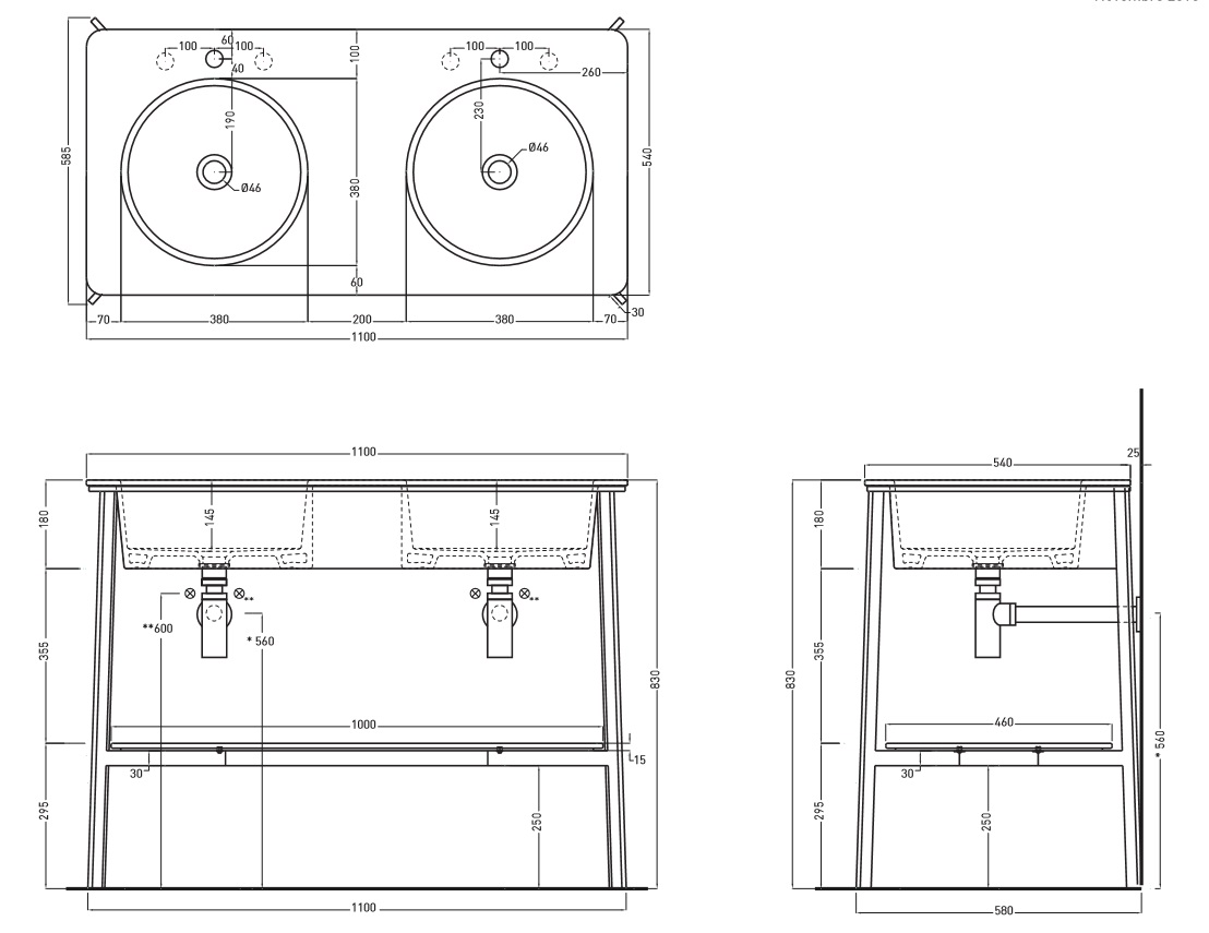 Cielo Catino Doppio Umywalka wpuszczana w blat 110x54 cm z otworem na baterie, Biały CALADKolor: biały