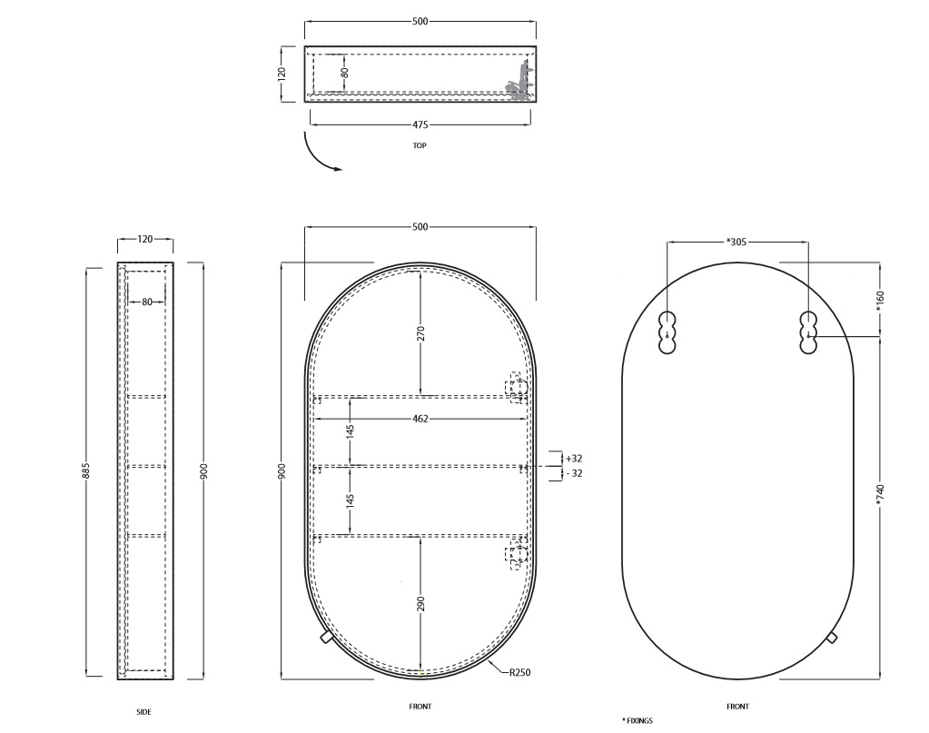 Cielo Catino Lustro 90x50 z szafką wewnątrz czarny CASPCONM