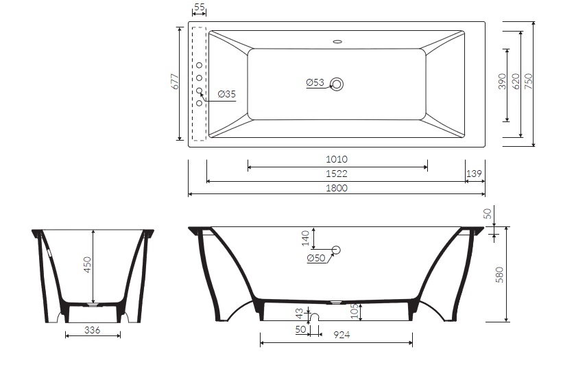 Marmorin Teodor II Wanna przyścienna biała/czarna P_W_084_05_1800