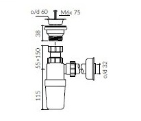 Marmorin Półsyfon z korkiem i gumowym sitkiem chrom ZPS