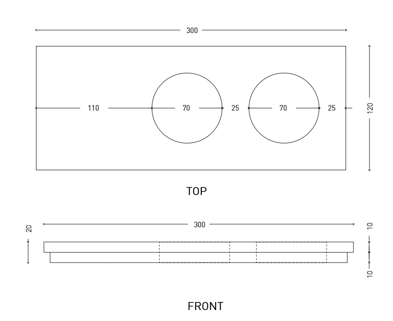 Cielo Półka z dwoma wgłębnieniami okrągłymi 12x30cm, kwadratowa Biały ACMP5