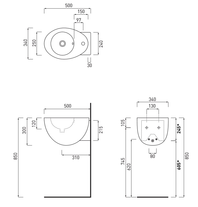 Cielo Le Giare Umywalka ścienna 34x50cm Biały LGLS