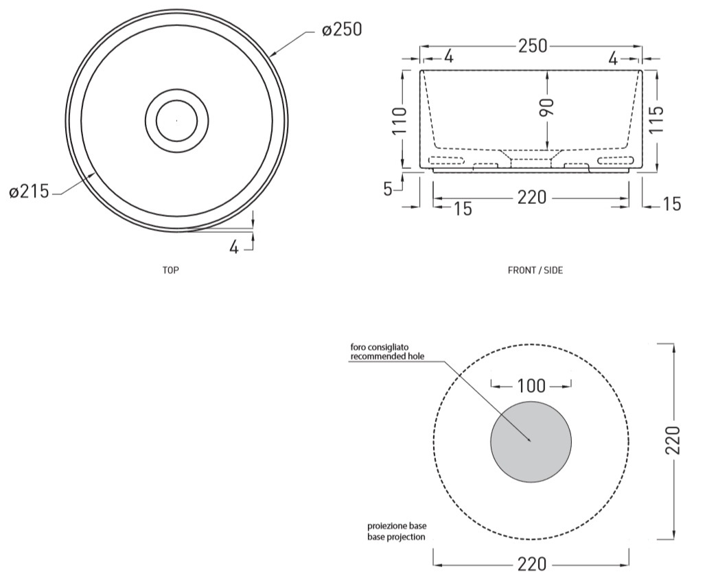 Cielo Shui Comfort Umywalka okrągła ø25cm, Biały MILAT