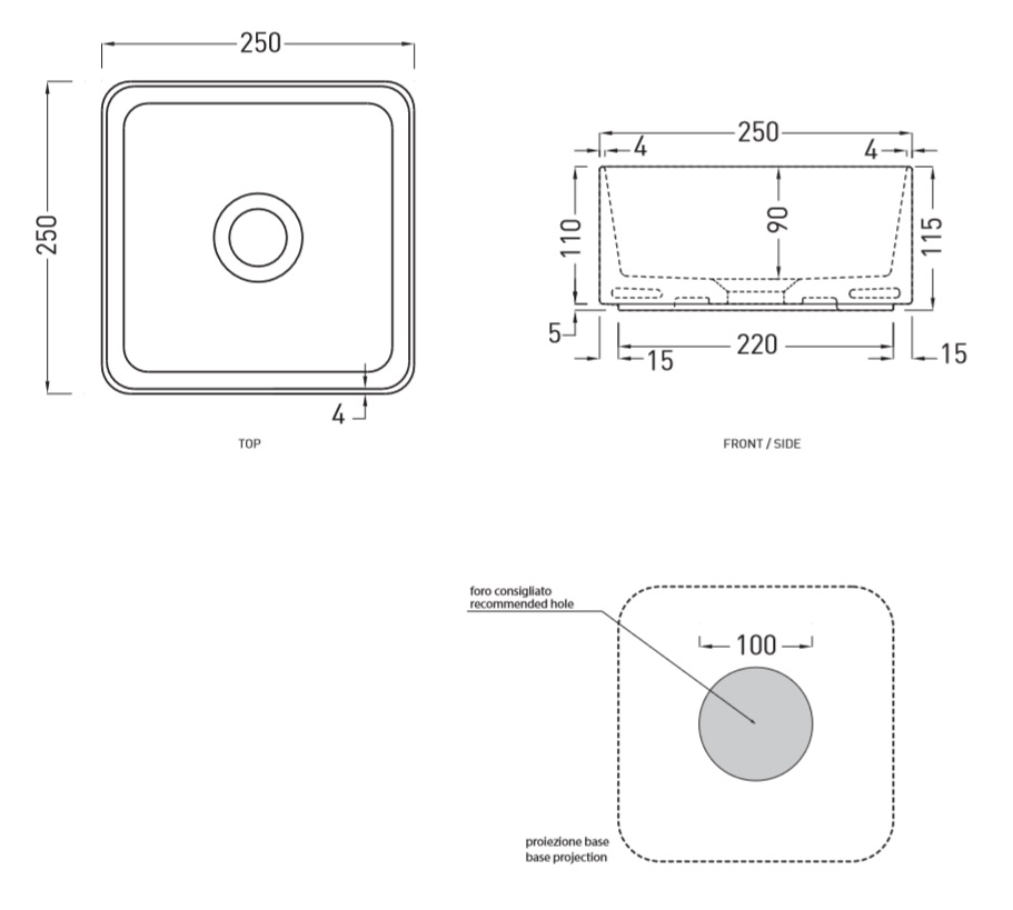 Cielo Shui Comfort Umywalka kwadratowa 25x25cm, Biały MILAQ