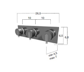 Bateria zawierająca trzy mieszacze do niezależnych odbiorników wody.