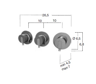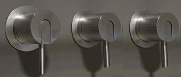 Bateria zawierająca trzy mieszacze do niezależnych odbiorników wody.