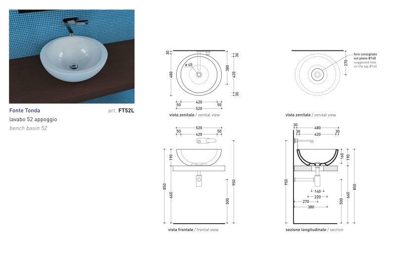 Flaminia Fonte Umywalka Stawiana na Blat 52cmKolor: biały