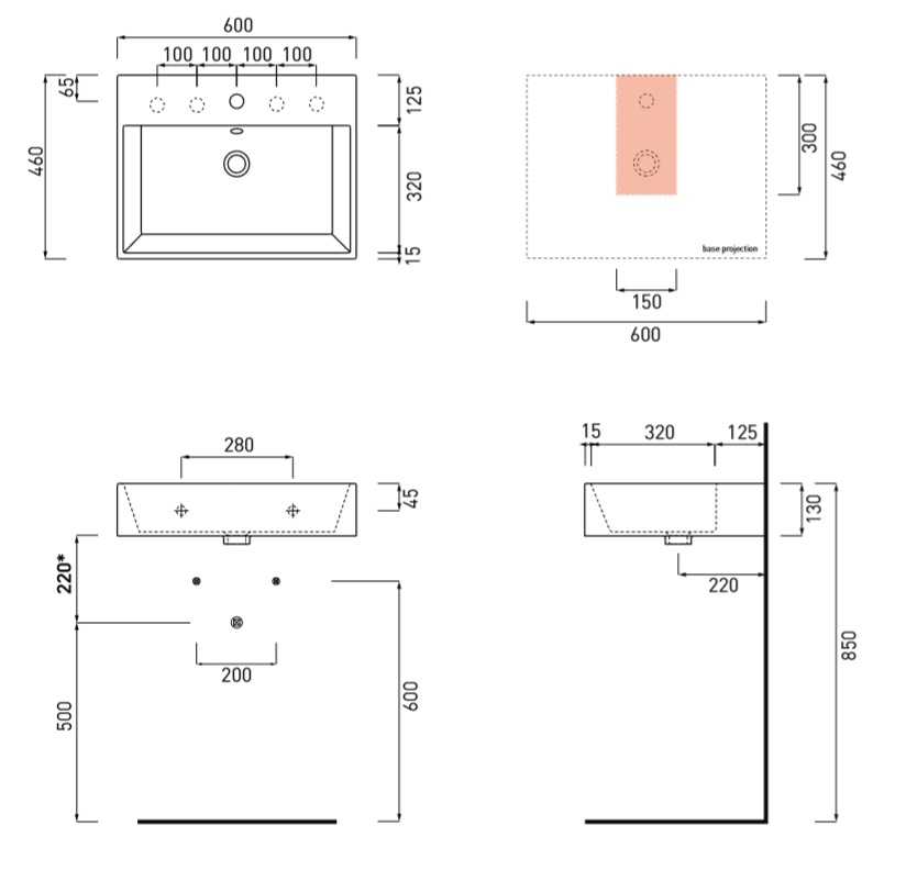 Cielo Smile Umywalka 60x46 cm prostokątna ścienna/stawiana Biały SMLAA60