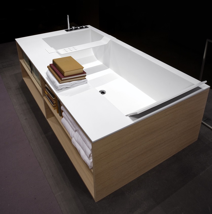 Antonio Lupi Biblio Wanna prostokątna z półkami lewa 170x90 cm biała BIBLIO54