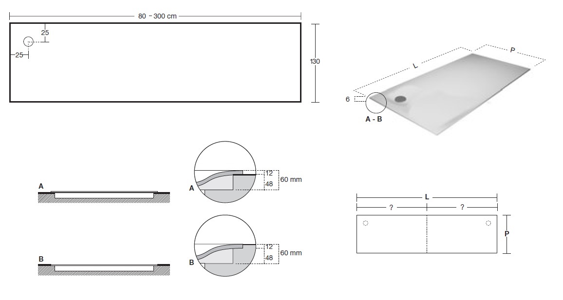 Możliwość montażu na podłodze (A) bądź wpuszczonego w podłogę (B).