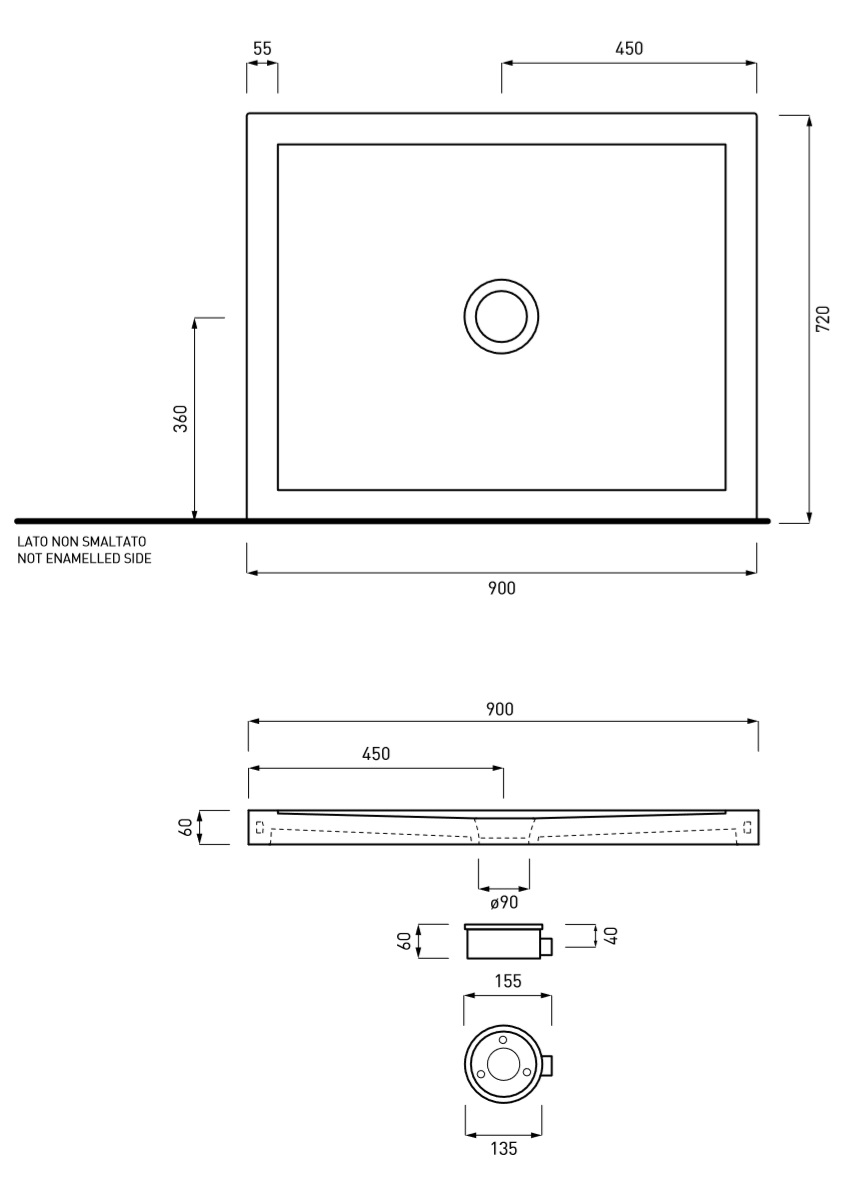 Cielo Sessanta Brodzik prostokątny 72x90cm Biały PD67290