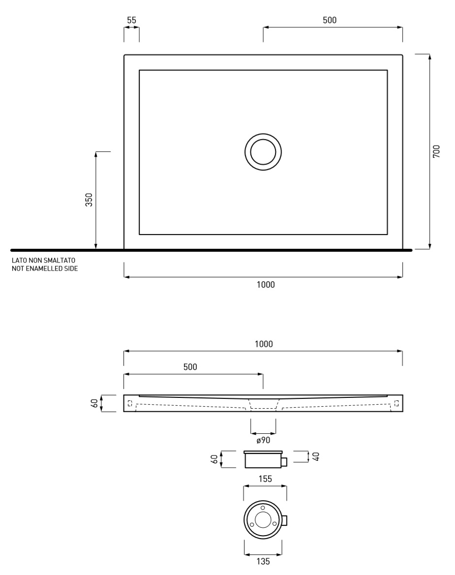 Cielo Sessanta Brodzik prostokątny 70x100cm Biały PD670100