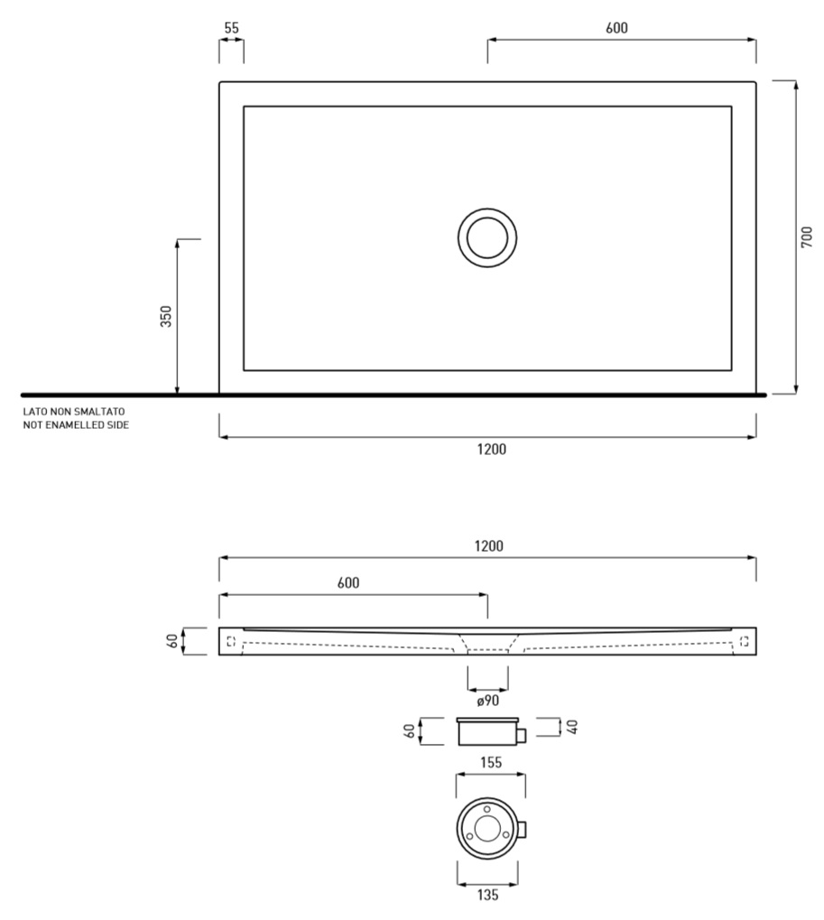 Cielo Sessanta Brodzik prostokątny 70x120cm Biały PD670120