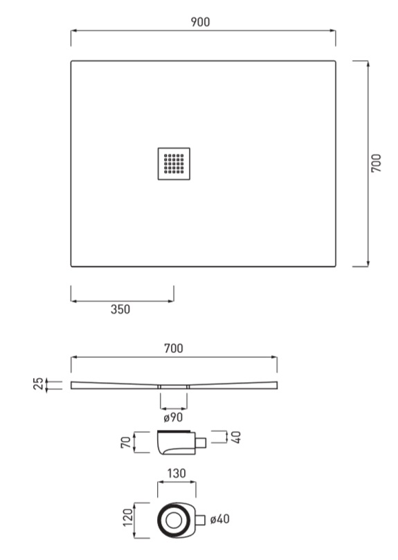 Cielo Venticinque Brodzik prostokątny 70x90cm Biały PDR9070