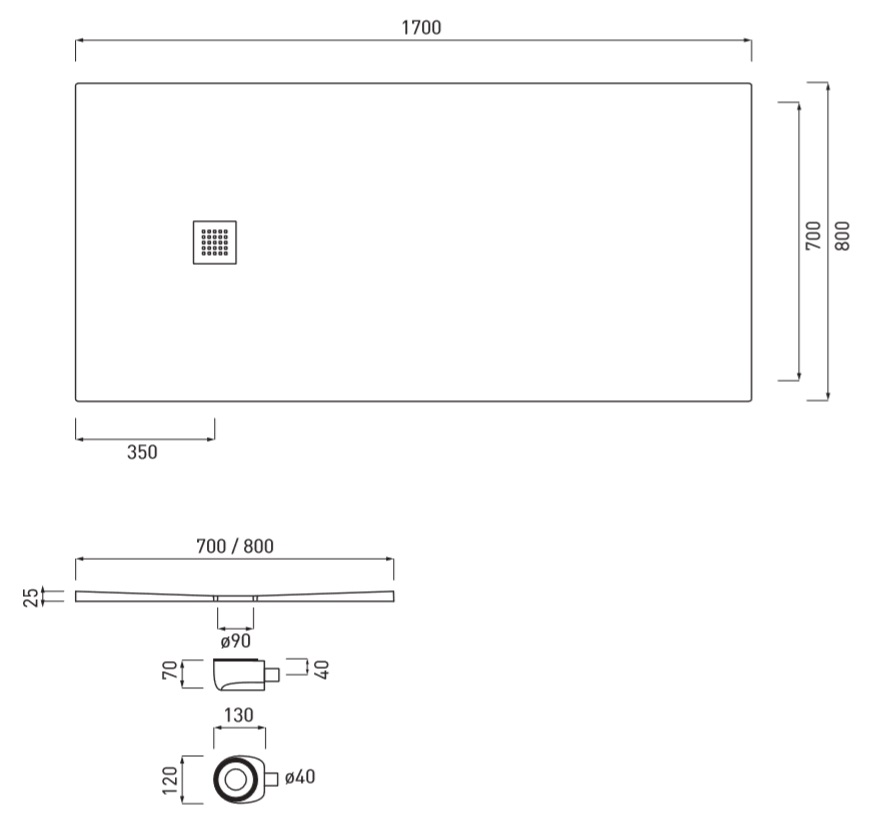 Cielo Venticinque Brodzik prostokątny 70x170cm Biały PDR17070