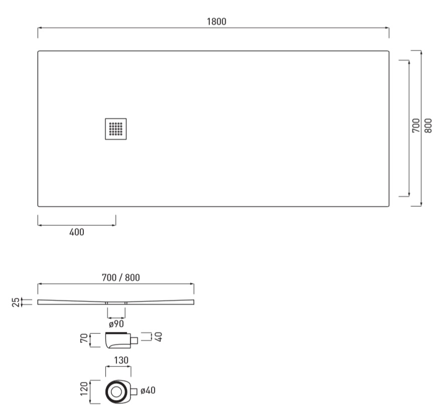 Cielo Venticinque Brodzik prostokątny 70x180cm Biały PDR18070