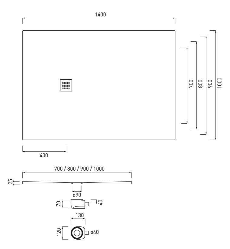 Cielo Venticinque Brodzik prostokątny 80x140cm Biały PDR14080
