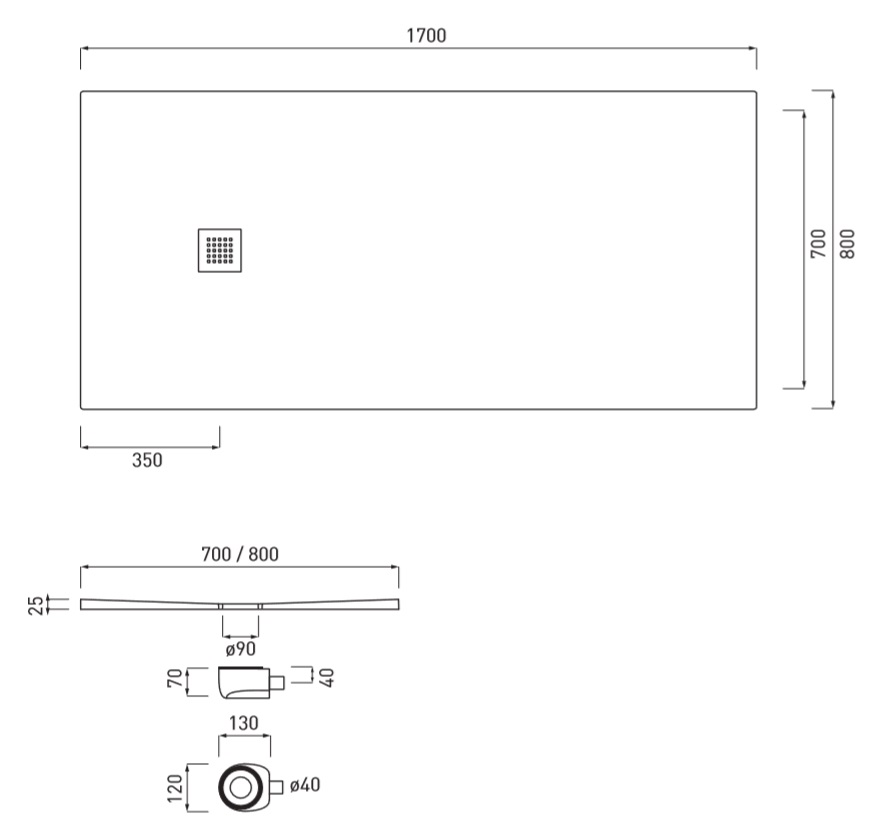 Cielo Venticinque Brodzik prostokątny 80x170cm Biały PDR17080