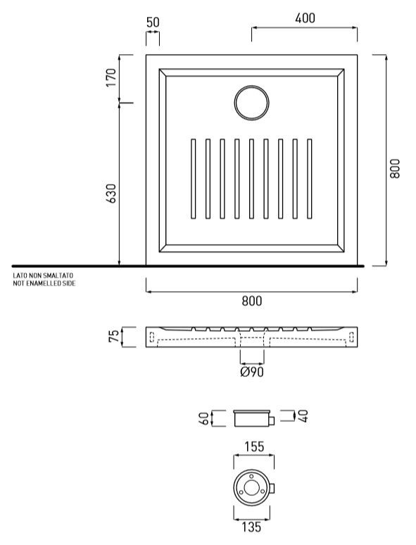 Cielo Settanta Brodzik kwadratowy 80x80cm Biały PD78080