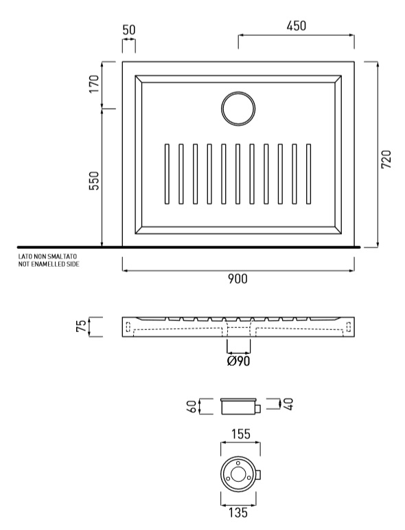 Cielo Settanta Brodzik prostokątny 72x90cm Biały