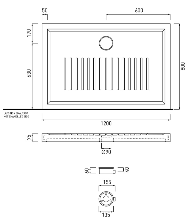 Cielo Settanta Brodzik prostokątny 80x120cm Biały PD780120