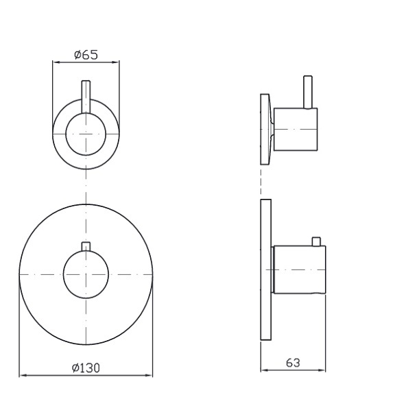 Elementy zewnętrzne dla baterii podtynkowej termostatycznej 1/2" z przełącznikiem.