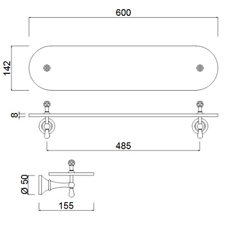 Giulini Giovanni Ibisco Crystal Półka 60 cm Ścienna chrom RG1109/S