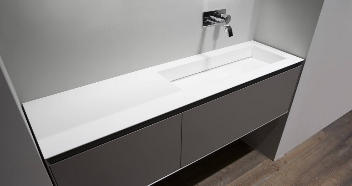Za dopłatą możliwość zamówienia umywalki o dowolnej szerokości w zakresie 99 - 299,4 cm oraz grubości 12,5 cm.
